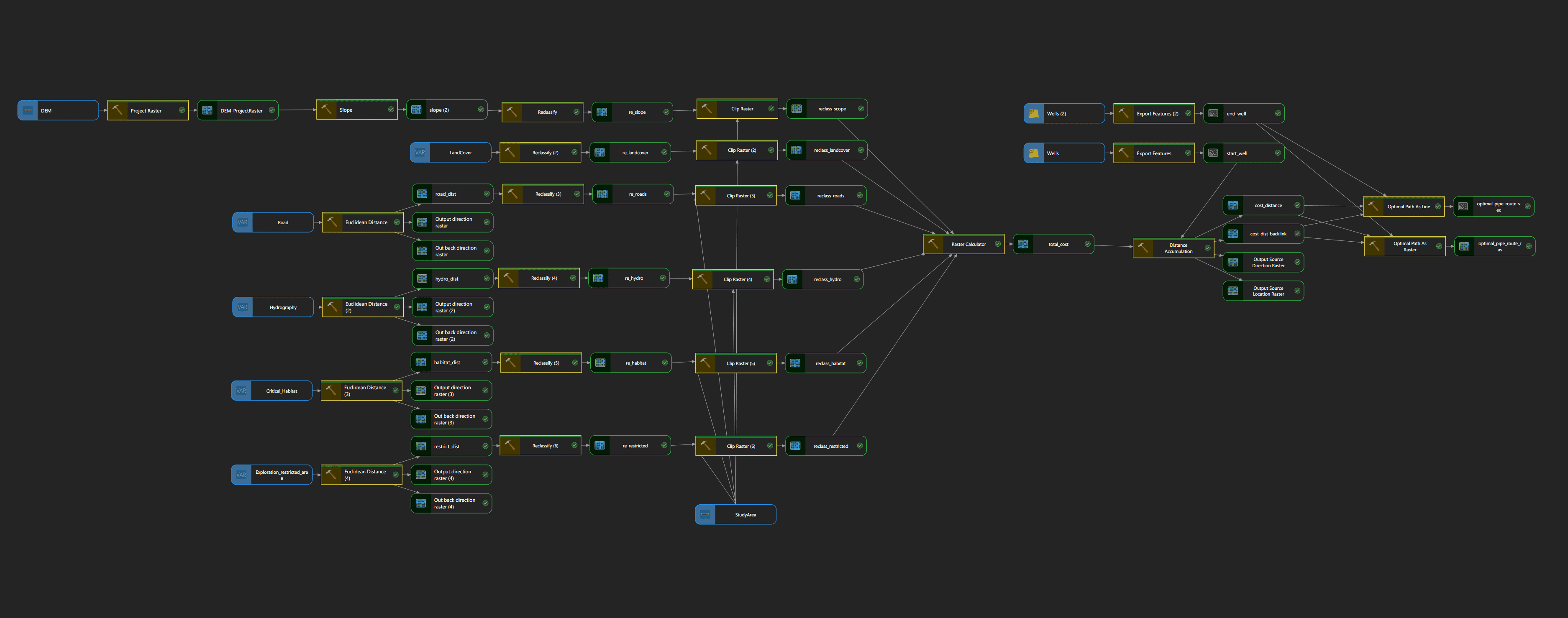 Executed a Cost Distance Analysis using ArcGIS Pro to determine the optimal path for a new pipeline.