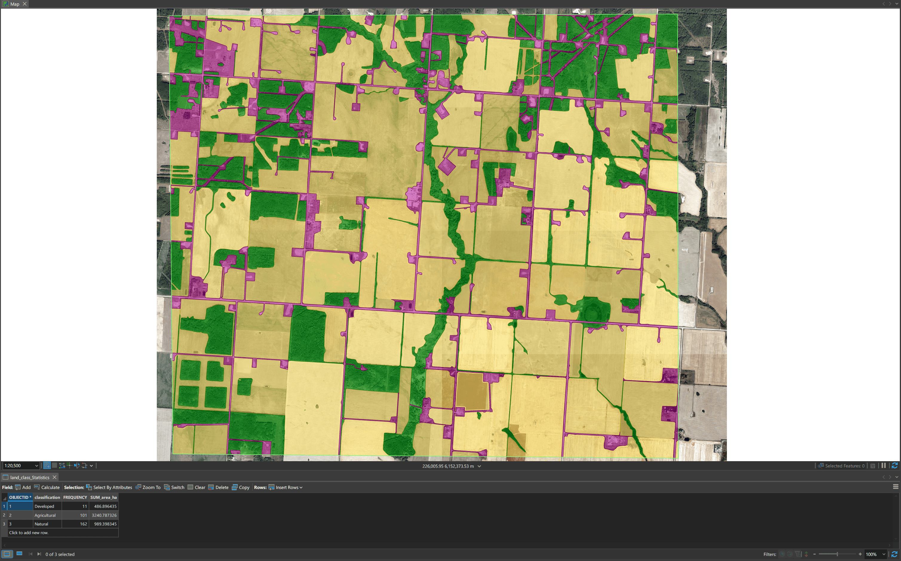 Manual land classification digitization to determine proposed developments impact on non-developed land cover.